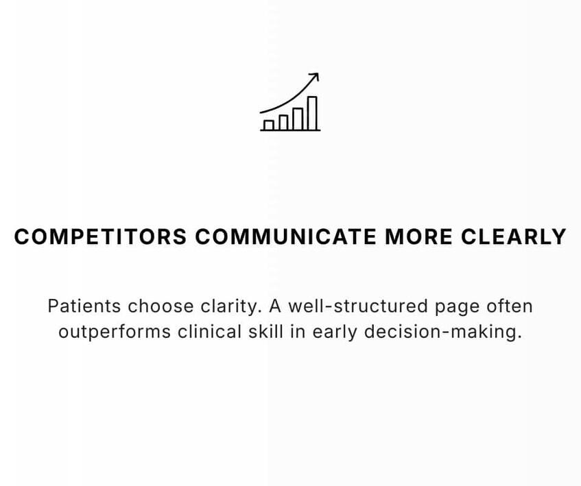 Most clinic pages look modern but still convert poorly.Structure — not aesthetics — is what increases cosmetic enquiries.